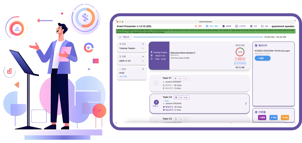 Automated Timing & Flow Control: Keep your sessions running like clockwork. Our integrated countdown timer automatically syncs with each presentation’s duration and Q&A window. It’s a hands-free way to ensure your event stays on schedule without the awkwardness of manual interruptions.