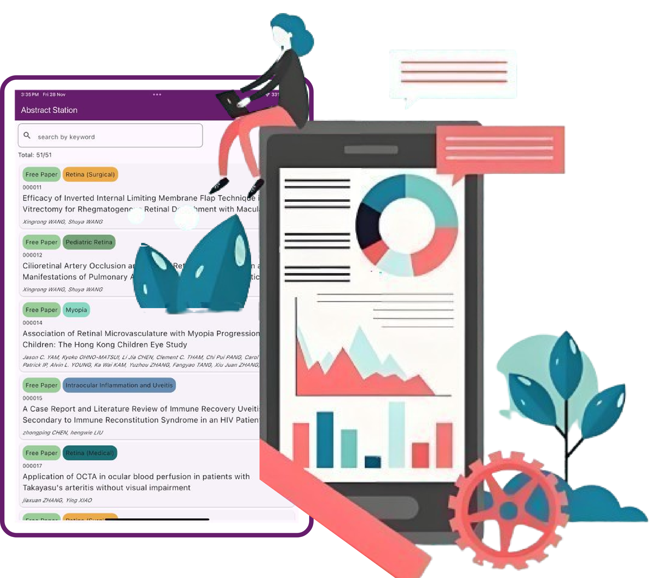 Display with screen devices make your visitors a stand up station to review abstract attend voting. Easy search and manage different category of abstract.